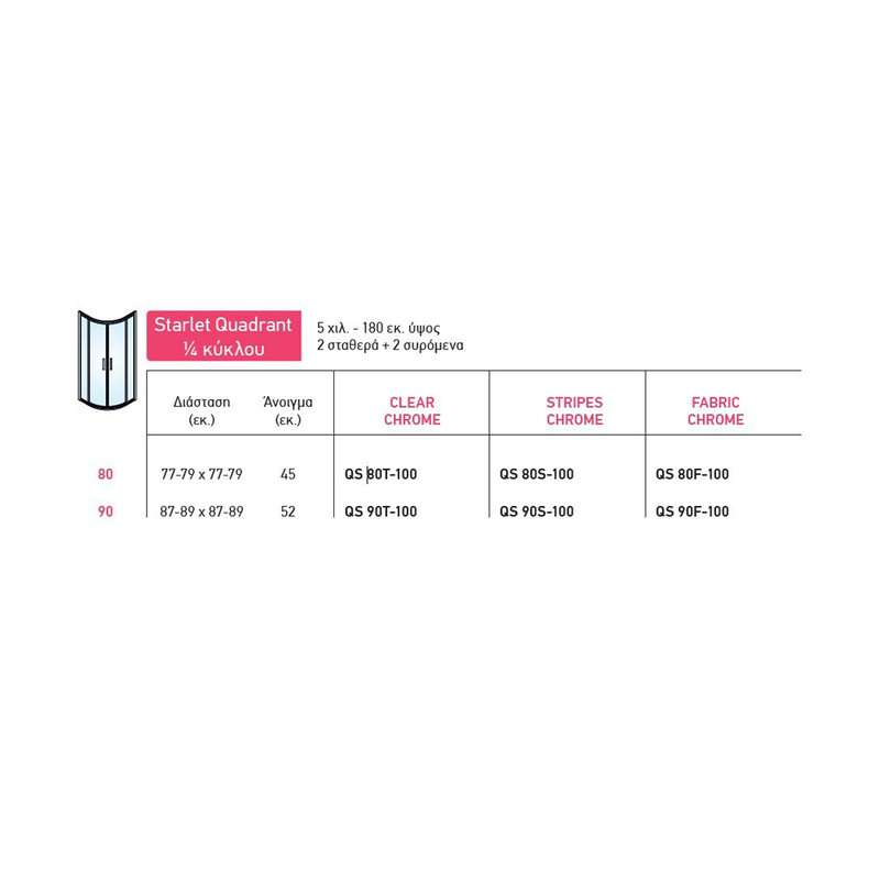 Καμπίνα ντουζιέρας ημικύκλια Starlet Quadrant Chrome Clear Glass με 2 σταθερά και δύο συρόμενα φύλλα