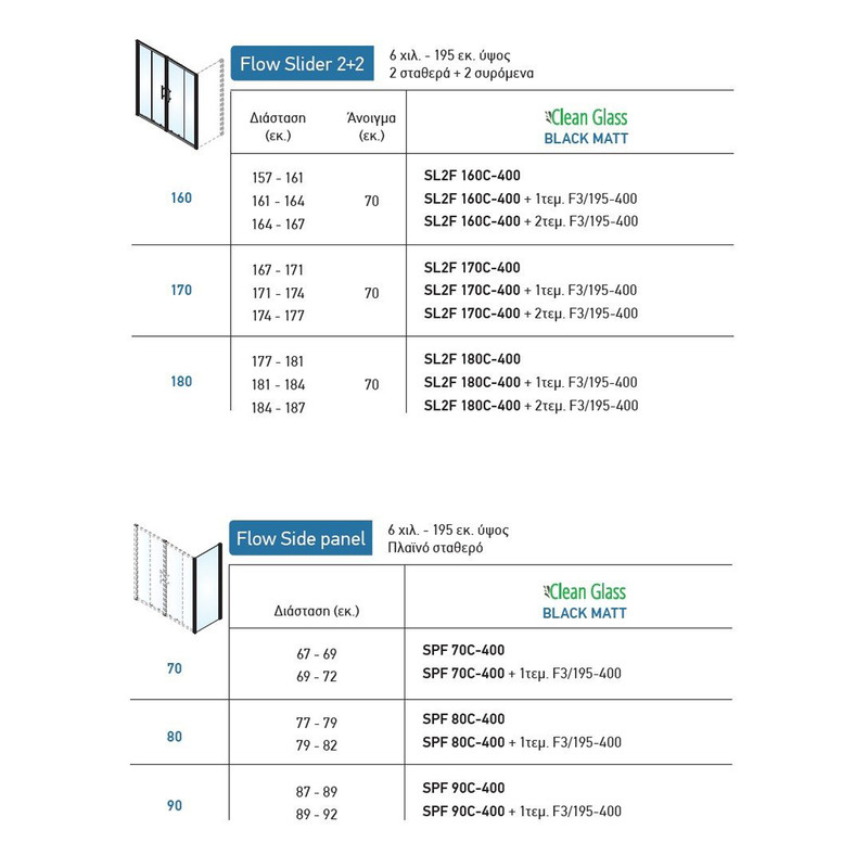 Τύπος Καμπίνας: Ευθύγραμμη (τοίχο – τοίχο ή με σταθερό πλαϊνό φύλλο)